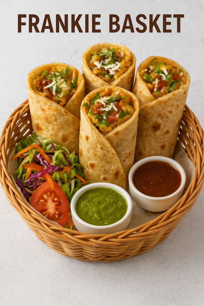 Pair this Frankie Basket with a chilled drink or masala chai for a complete street-food style experience.