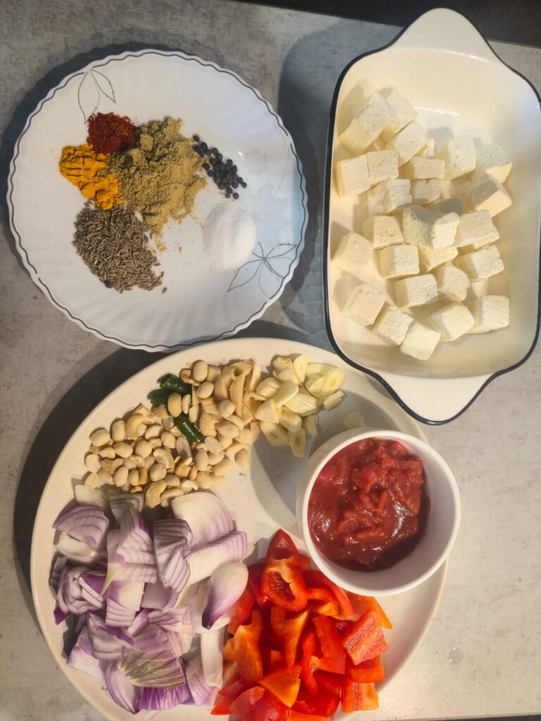 Healthy Paneer Cashew Capsicum Curry — a high-protein, vegetarian Indian curry made with olive oil, roasted nuts, and tomato. Rich in calcium, antioxidants, and heart-healthy fats. Perfect for weight control, diabetics, and active lifestyles.