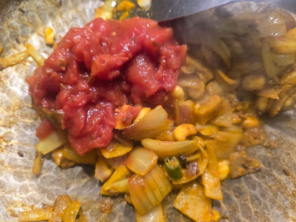 • 1 cup tomato puree (or 1 large tomato, blended)